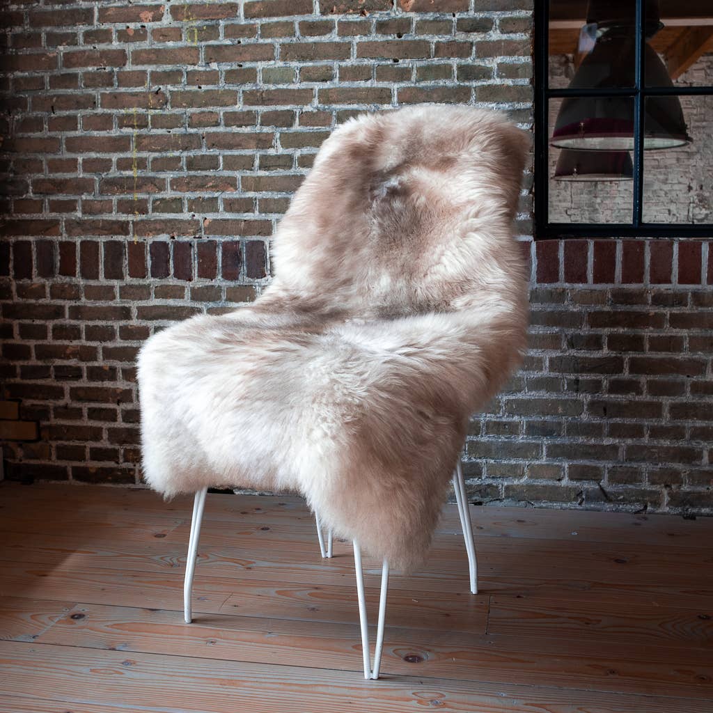 Sheepskins from the German Blackhead sheep, prized for their naturally mottled taupe coloring and exceptionally dense, soft wool. Each hide has its own organic variations, giving every piece a unique, lived-in character. Beautiful draped over a chair, at the foot of a bed, or layered on the floor for added warmth and texture.