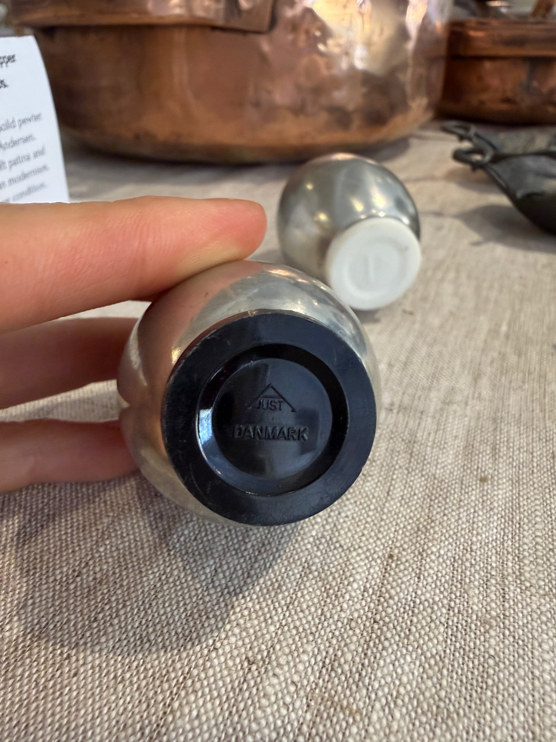 Each shaker is clearly marked by the maker and country of origin, indicating its provenance and manufacture in Denmark. The height, width and proportions reflect the compact and refined style typical of Andersen’s small tableware pieces.