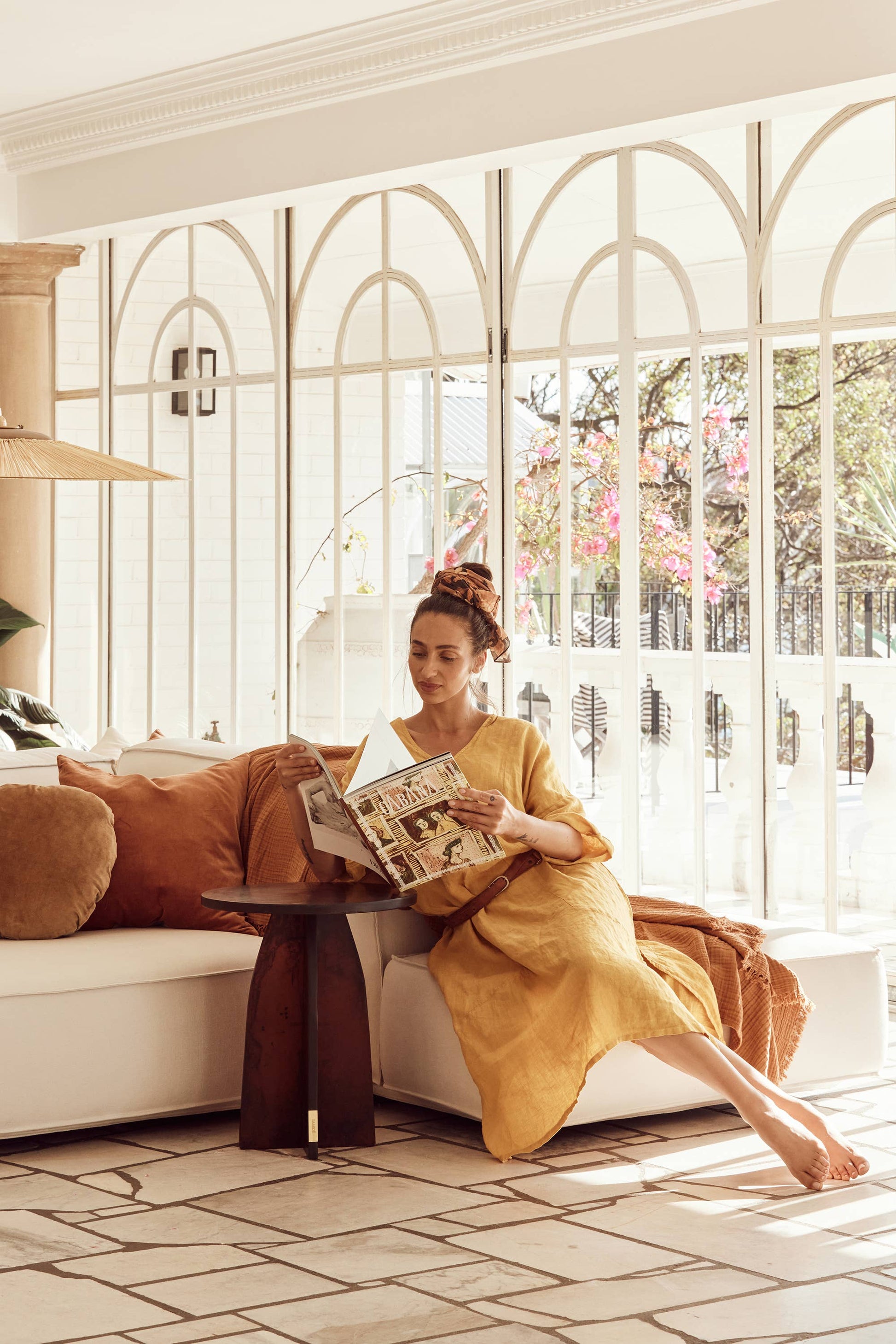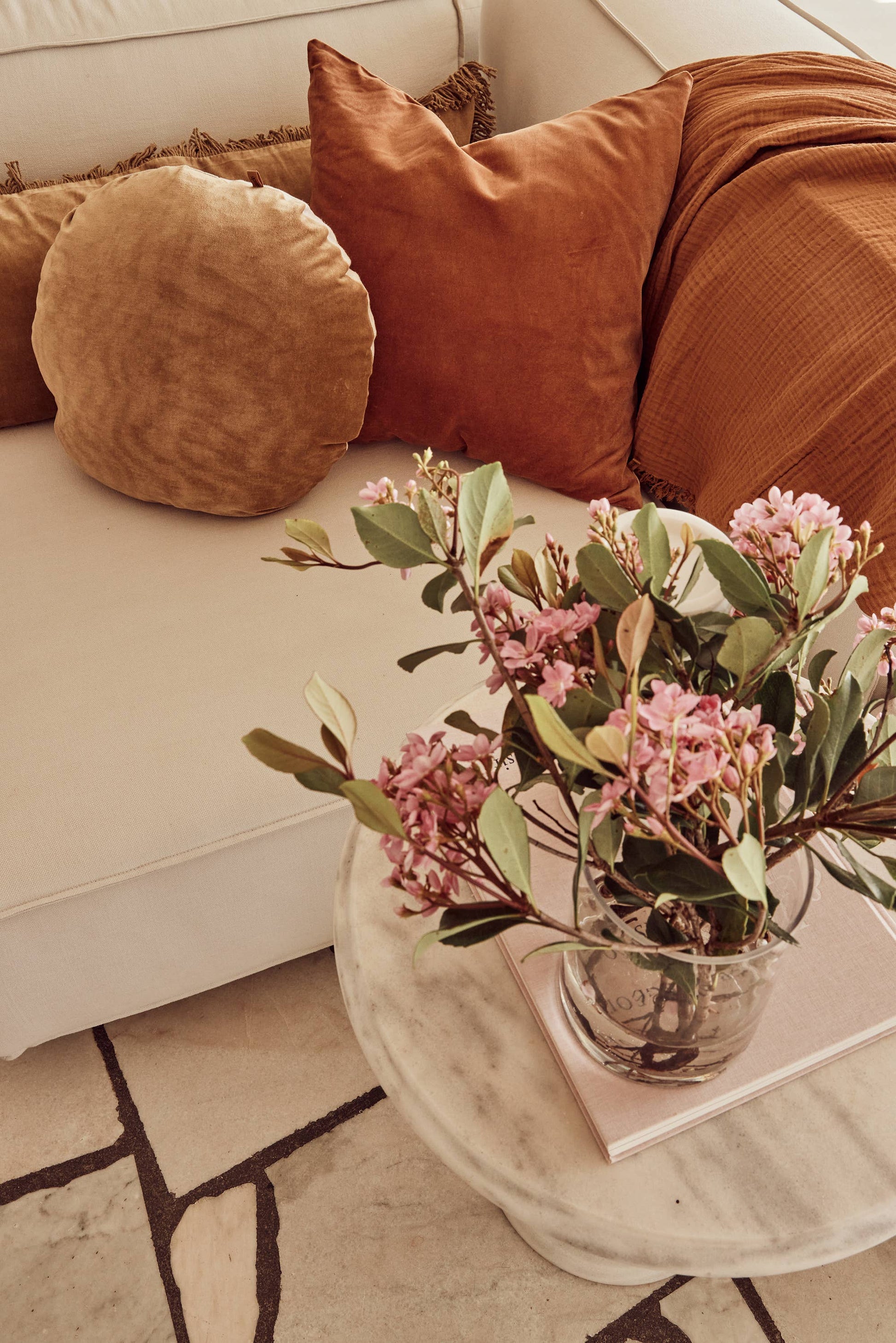The Anatolia Linen/Velvet Square Pillow is the epitome of relaxed, retro styling. Plumped up with a featherdown insert for maximum comfort you'll love the texture and understated luxury this adds to your room. Our Square Pillow is super soft, with vintage wash tones and reversible linen backing. These cushions are made for you to snuggle up and relax with! • Front: 100% Cotton / back: 100% Linen • Comes with insert Details • Dry clean only Measurements Square | 50cm x 50cm/19.68" x 19.68"