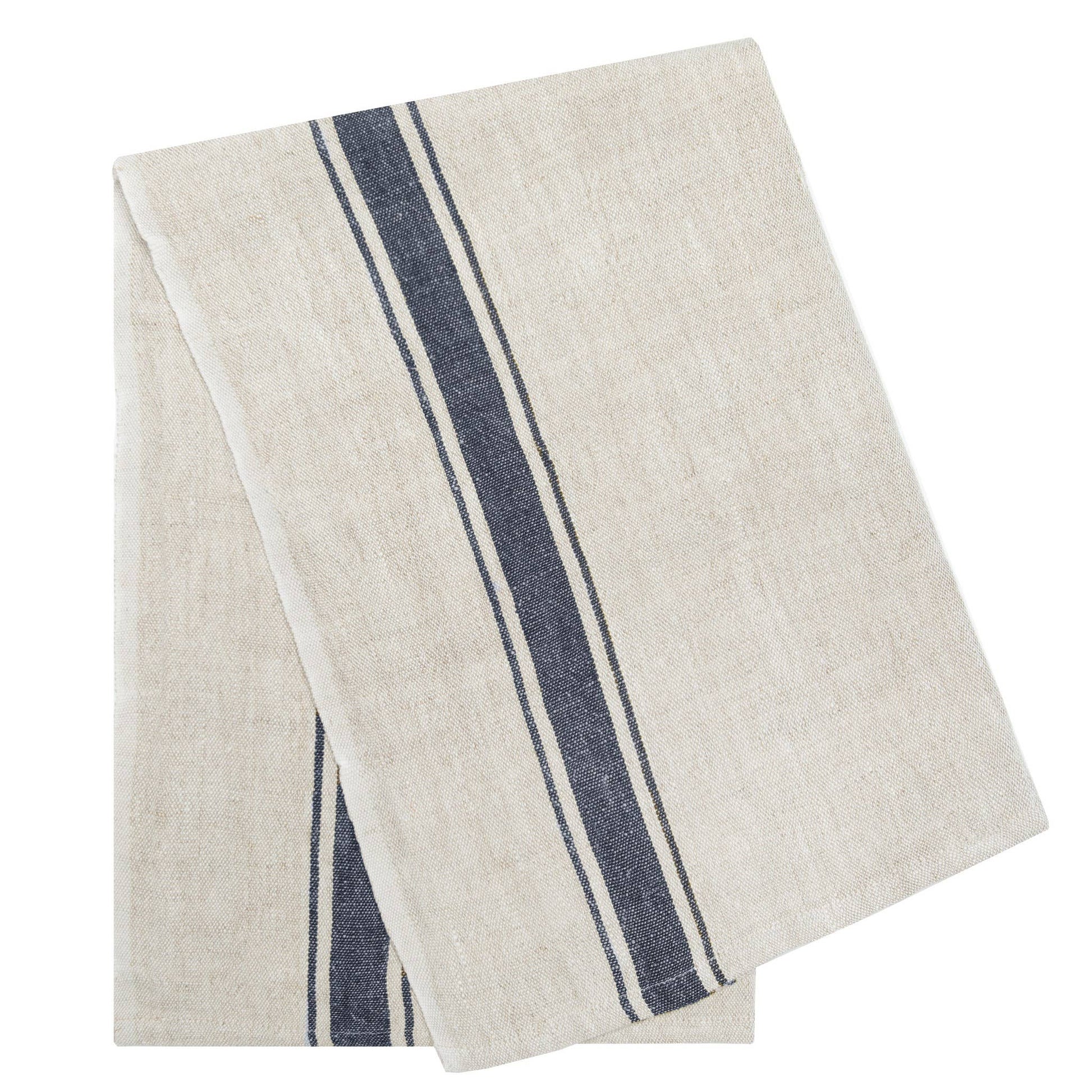 Elevate your Kitchen with our Marseille linen towels. Handmade for an earthy touch, they feature classic stripes, adding rustic charm to any home. Elevate your Kitchen with classic French country charm. Easy care, 90% Linen / 10% Cotton. Bon Appétit!