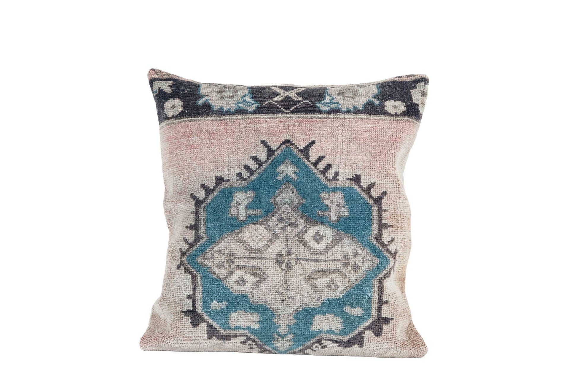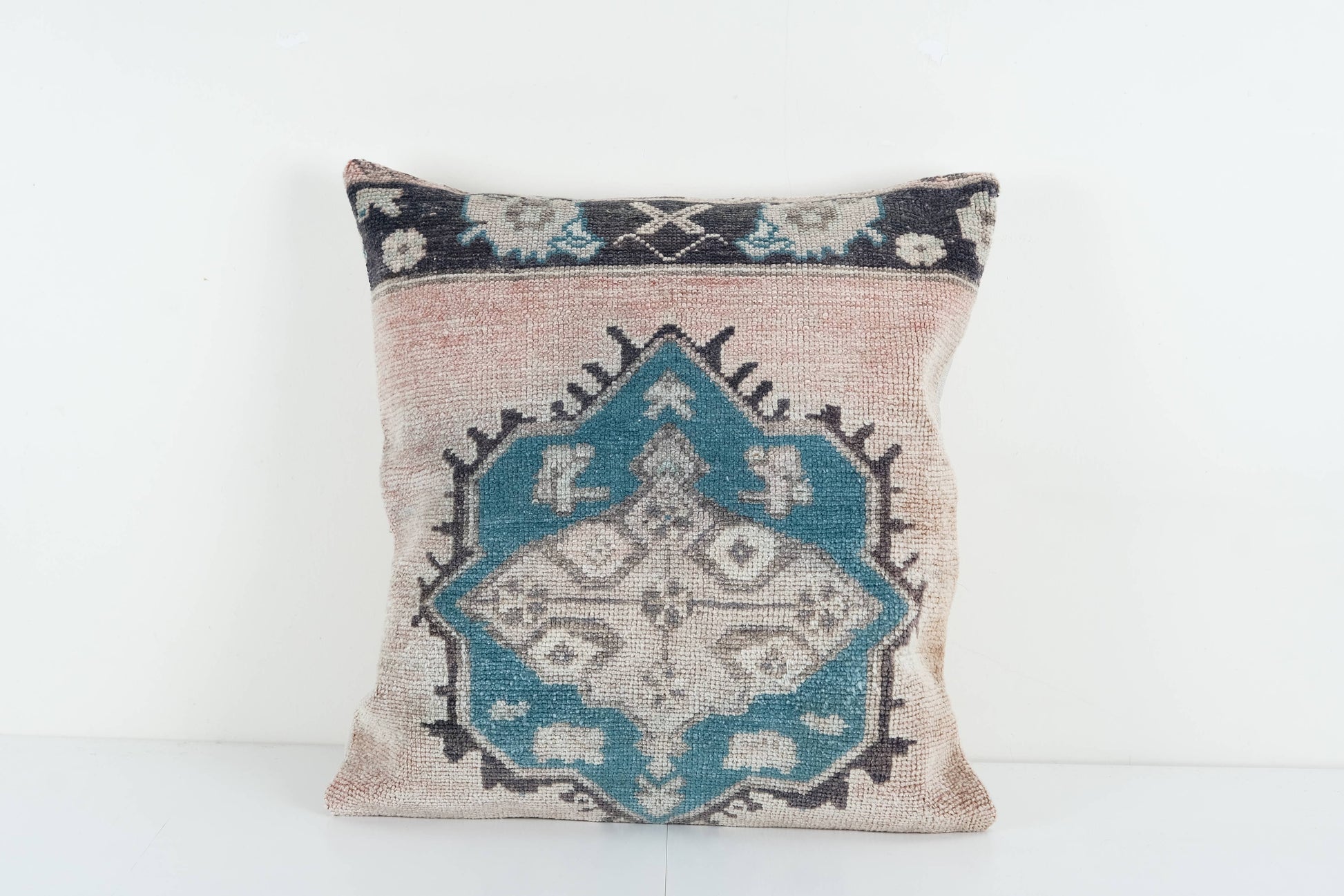 Turkish Oushak Rug Pillow Cover, Square Queen Boho Woven