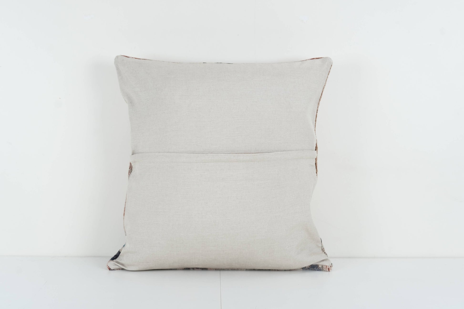 Elevate your home decor with these exquisite 26'' x 26'' pillow covers crafted from authentic vintage Turkish rugs, handwoven in the 1960s. The rich and vibrant woolen colors on the front of each pillow are a testament to the artistry of Turkish craftsmanship. These cushions add a touch of elegance and nostalgia to any couch, chair, or bed.